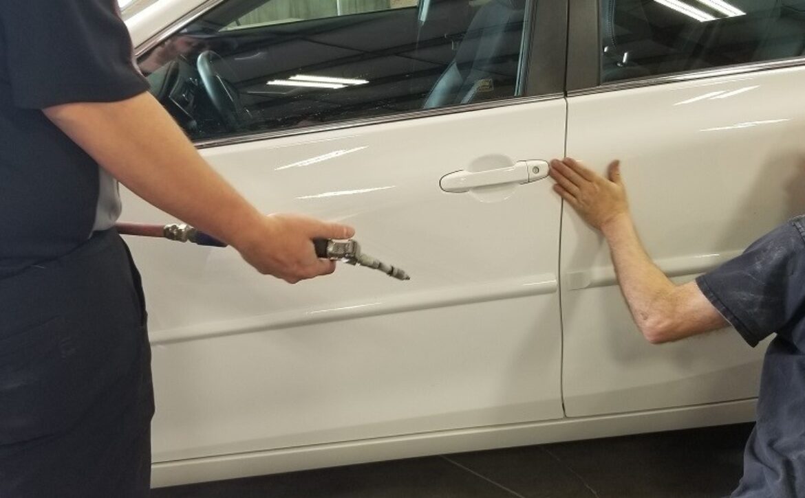 Collision Center of Andover is conveniently located just minutes outside of Wichita. Our team of expert auto body technicians can handle everything from fixing deep scratches, paintless dent repair to full collision repair. Watch a stunning video of how we knock out dents quickly with the PDR method!